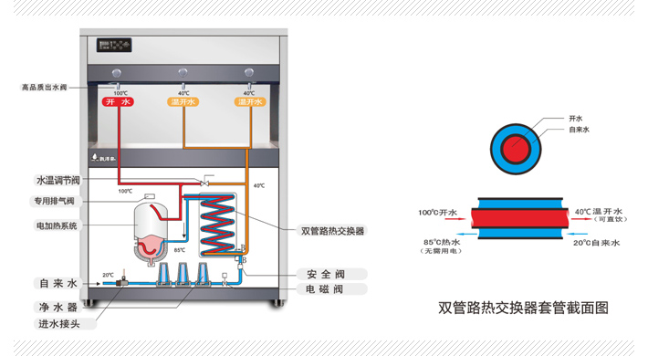 ◆ 双管路热交换器无焊接技术 杜绝重金属超标