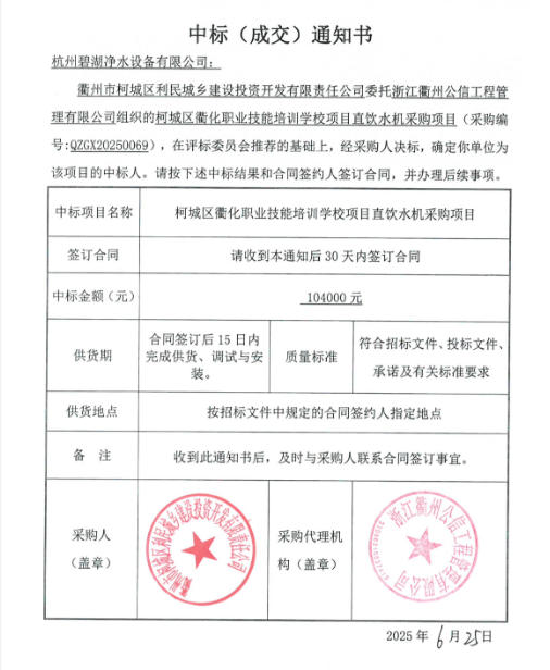 柯城区衢化职业技能培训学校项目直饮水机采购项目
